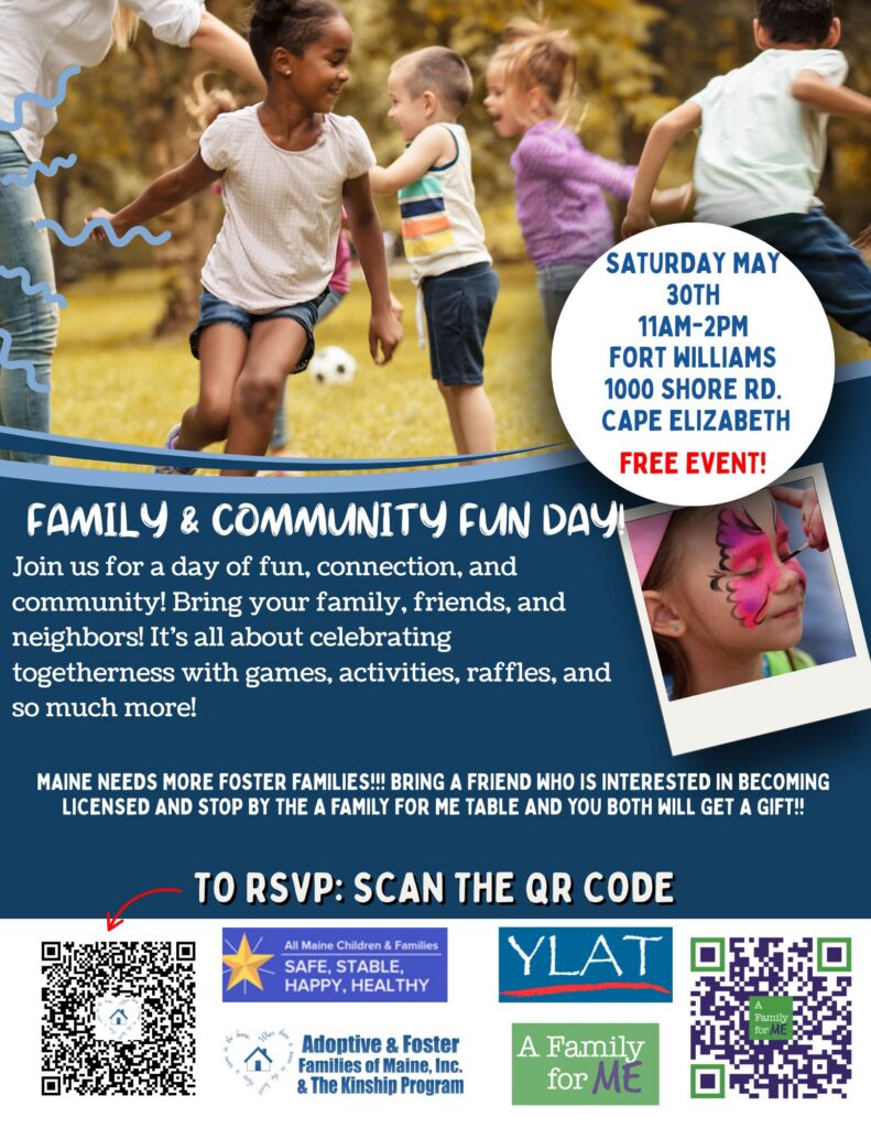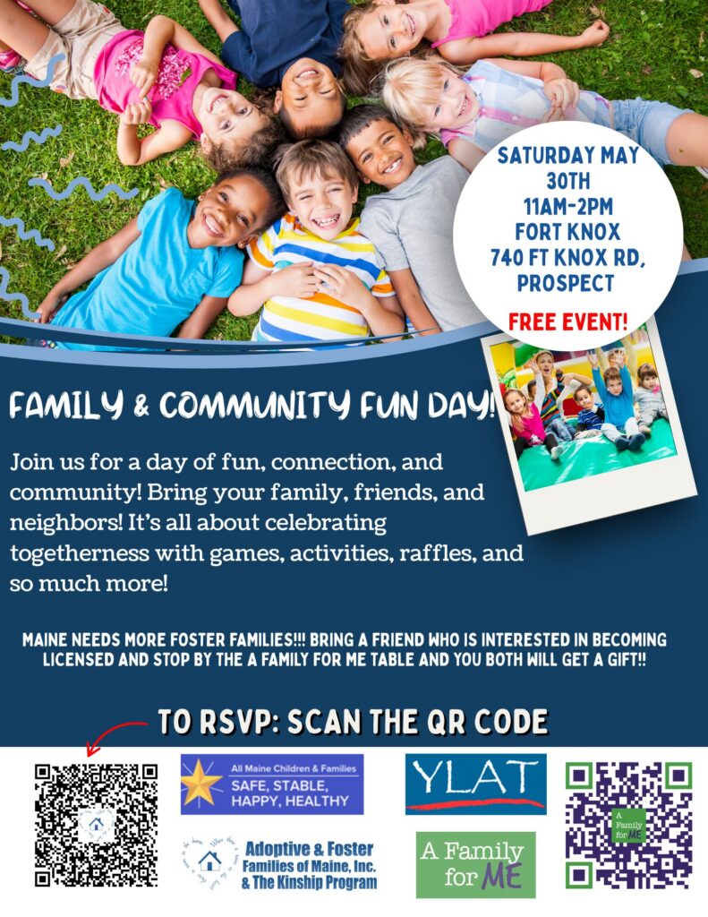 We have several Family & Community Fun Days throughout the state of Maine, please see flyers below & Click on them to go to The RSVP Page